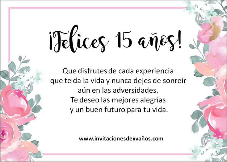 - "En tus 15 años, te deseo que cada día encuentres motivos para sonreír y ser feliz".